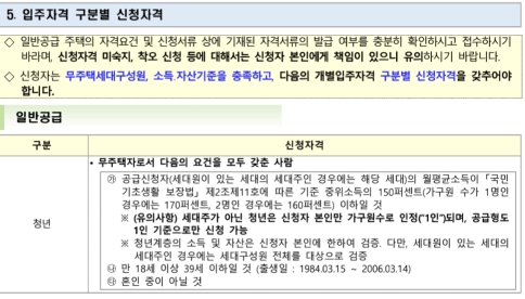 구분별 신청자격에 나와있는 조건에도 적합해야 합니다.